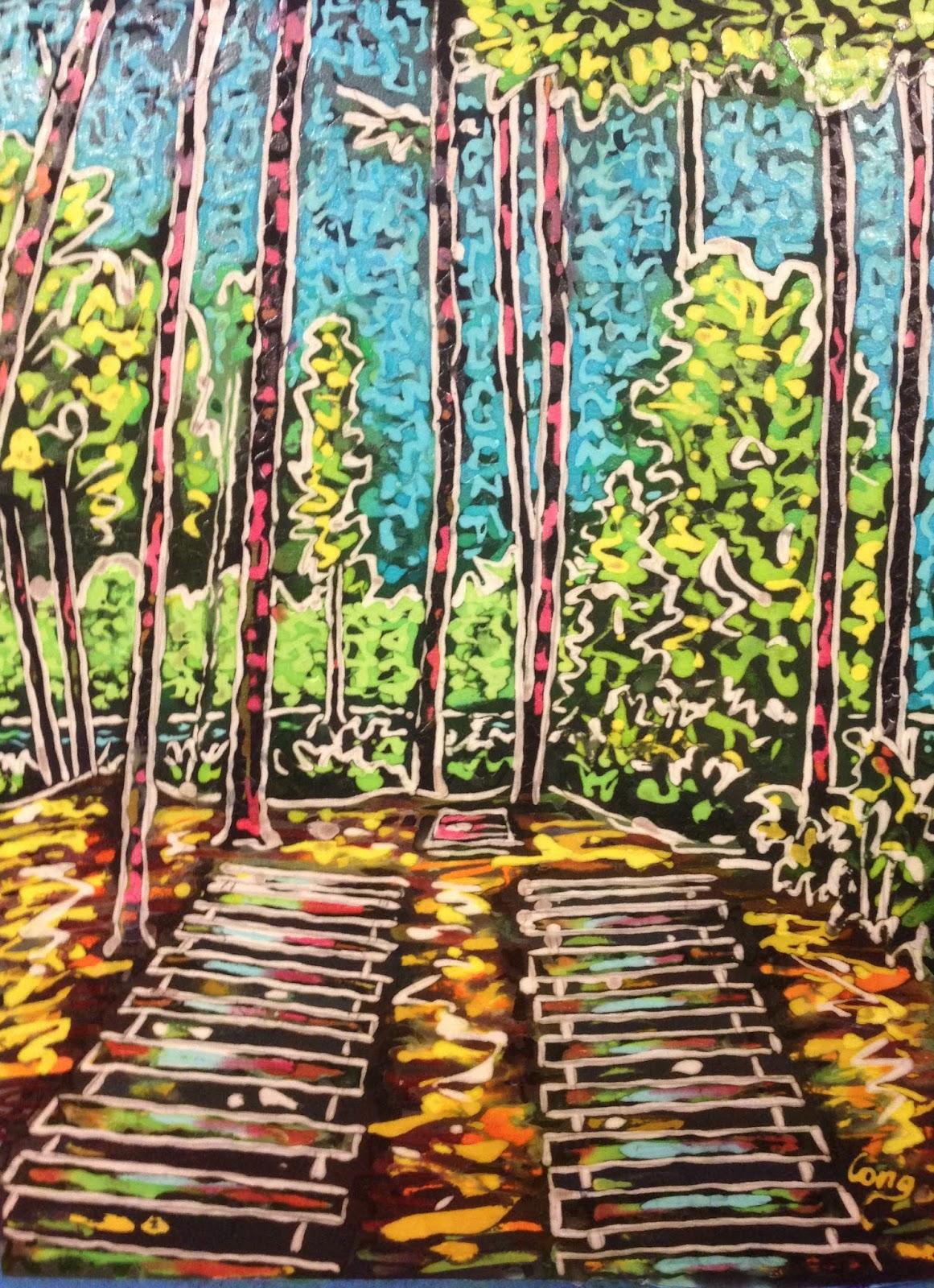I just finished working on a commission for an old friend from Camp Timanous. The commission was for a painting of Beginners Beach. It is always a challenge to paint a scene of a place you love. The process is still the same making sketches, looking at photos and the one I decided on had my old dog Bandit in the water but it was not the right time of day. I wanted it to be during morning dips. This is a place I could walk through blind folded. When I'm stressed out I often close my eyes take a breath and the visual of the sun coming through the pine trees over the canoe dock. This vision will fill me with a quiet calmness. I've been a "Polar Bear" at Beginners for at least 16 summers never missing a morning. There are some cold mornings in Maine too! I always dive, a "professional" shallow dive of course because the water is no more than 4 ft deep. When I surface and stand up I'd see the tall pine trees with the sun coming through the branches and know that I'm ready for my day. It is my reset button. In the afternoon when the sun is going down there is a golden light that hits the top of the pines that tower over the shore line of the cove and bring about thoughts of the Hudson River Painters of the 1900s. So of course, I had no trouble coming up with a composition but as I finished the first batik there seemed to be something not right. So I did another. and then another. I think that when you love a place so much it's sometimes hard to paint. I could keep going until I've painted a thousand painting of beginner’s beach but sometimes you just have to let it go. and though my students would yell at me. BE DONE!
